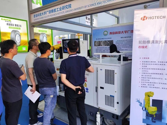 華工激光聯合青島科技大學廣饒橡膠工業研究院攜輪胎模具在線式激光清洗智能裝備驚艷亮相,為橡膠輪胎行業帶來最先進、最前沿的“智造”體驗。