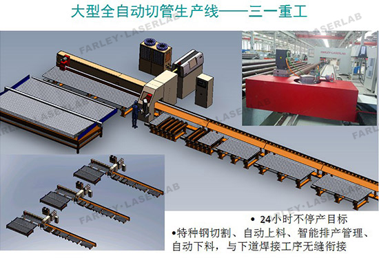 華工法利萊研發的國內首套數控激光切管生產線在“三一重工”全面投產