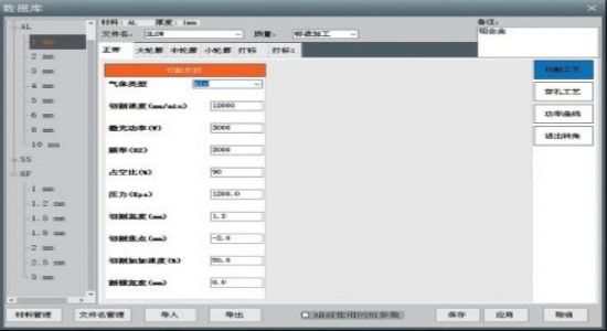 切割三維工件時并不一直是直線切割,在切割過程中會有大量的拐角、凸起或變向,機床的實際運行速度是在不斷變化的。為此,我們采集了實時路徑速度、激光器功率、頻率、占空比等參數(shù)數(shù)據(jù),根據(jù)其變化匹配出的最佳切割參數(shù),找其相對應的函數(shù)關(guān)系,實現(xiàn)輸出變量將時刻變化的參數(shù)揉到機床的運動中,實現(xiàn)效率不減,切割質(zhì)量上升,或者效率略降,切割質(zhì)量提升。將該公式寫入系統(tǒng)程序中,通過人機交互界面直接激活功能即可使用。