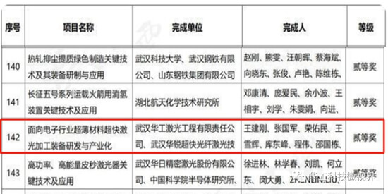 日前,湖北省“加快推進(jìn)武漢具有全國(guó)影響力的科技創(chuàng)新中心建設(shè)暨湖北省科技創(chuàng)新大會(huì)”在武漢召開,會(huì)上正式公布了2021年度湖北省科學(xué)技術(shù)獎(jiǎng)獲獎(jiǎng)名單。其中,由華工科技核心子公司華工激光參與完成的“面向電子行業(yè)超薄材料超快激光加工裝備研發(fā)與產(chǎn)業(yè)化”項(xiàng)目榮獲科學(xué)技術(shù)進(jìn)步獎(jiǎng)二等獎(jiǎng)。