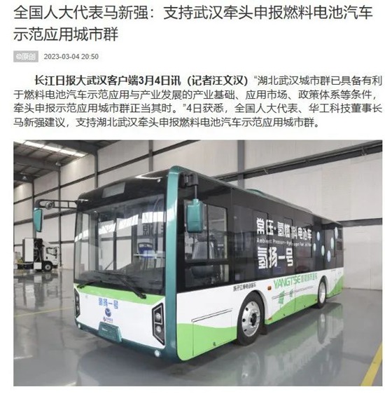 15 全國人大代表馬新強:支持武漢牽頭申報燃料電池汽車示范應用城市群