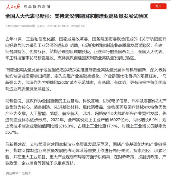 01 全國人大代表馬新強:支持武漢創建國家制造業高質量發展試驗區