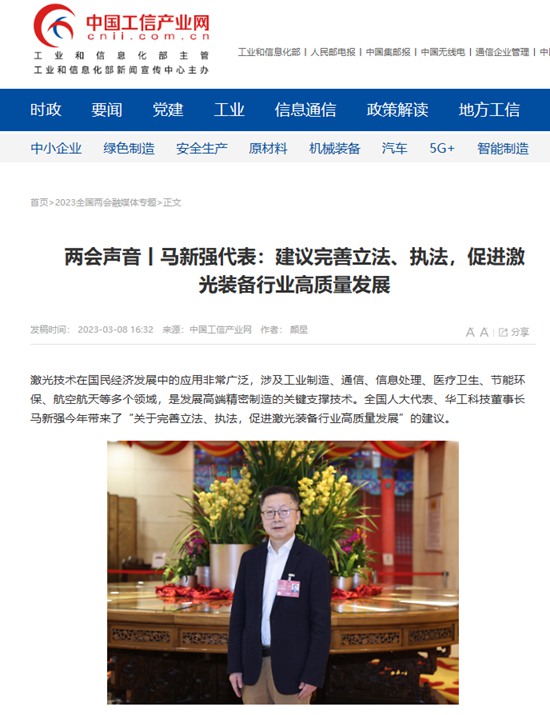 10 兩會聲音丨馬新強代表:建議完善立法、執法,促進激光裝備行業高質量發展