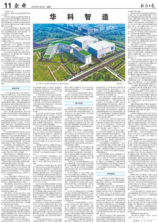 7月3日,《經(jīng)濟(jì)日?qǐng)?bào)》以頭版頭條+整版報(bào)道形式刊發(fā)長篇通訊,全面深入地報(bào)道華工科技依靠持續(xù)創(chuàng)新,培育發(fā)展動(dòng)能,加快實(shí)現(xiàn)高水平科技自立自強(qiáng)的創(chuàng)新發(fā)展之路。