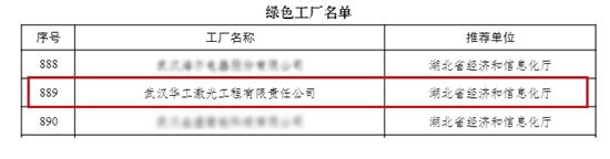 近日,國家工業和信息化部發布“2024年度綠色制造名單”,華工激光成功獲評“綠色工廠”,國家級榮譽再+1!