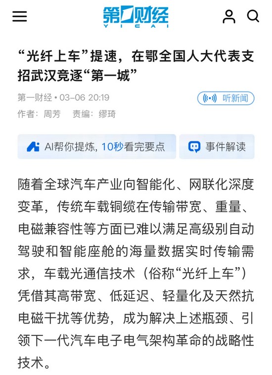 我們在新能源、船舶、航空航天等重點(diǎn)領(lǐng)域,與客戶的黏性在增強(qiáng)。新能源汽車是我們的重要應(yīng)用領(lǐng)域,(要)加快智能傳感器、6G通信,車載光互聯(lián)新產(chǎn)品的落地應(yīng)用。