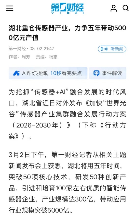 華工科技董事長馬新強(qiáng)對第一財(cái)經(jīng)記者表示,公司將聚焦高端智能傳感器技阿術(shù)攻關(guān),推進(jìn)“機(jī)器人+ AMR +視覺智能體 + MES”一體化協(xié)同,應(yīng)用場景從“家電+汽車”向“智慧生活+智慧出行+智慧電網(wǎng)+光伏儲(chǔ)能+具身智能”深度拓展,并聯(lián)合上下游企業(yè)圍繞核心零部件等“卡脖子”領(lǐng)域開展聯(lián)合攻關(guān),實(shí)現(xiàn)核心部件從研發(fā)到量產(chǎn)的自主可控,全面提升國產(chǎn)傳感器產(chǎn)業(yè)鏈供應(yīng)鏈韌性與安全水平。