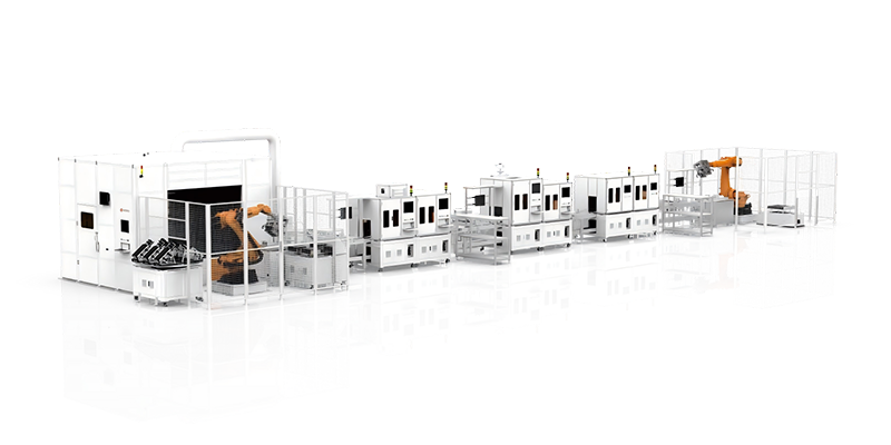 模組自動上料裝配、側板焊接、極柱清洗、焊接前CCD檢測、匯流排安裝、匯流排焊接、焊后CCD檢測、模組測試、模組下線,AGV轉運等全套工序。