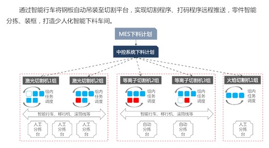 機械智能下料中控系統是一種集成化的智能控制系統,主要用于優化下料作業流程,提高生產效率和物料利用率。該系統通過與MES、ERP等外部系統集成,接收生產工單信息,實現物料出入庫的智能化管理。它能夠自動解析套料圖,精準控制下料過程,支持自動分揀、輸送線控制和物流調度等功能。此外,系統還具備實時監控和預警功能,利用圖像識別技術對下料過程進行監控,及時發現并處理異常情況。通過智能調度和優化算法,該系統能夠顯著減少人工干預,提升產能和材料利用率。