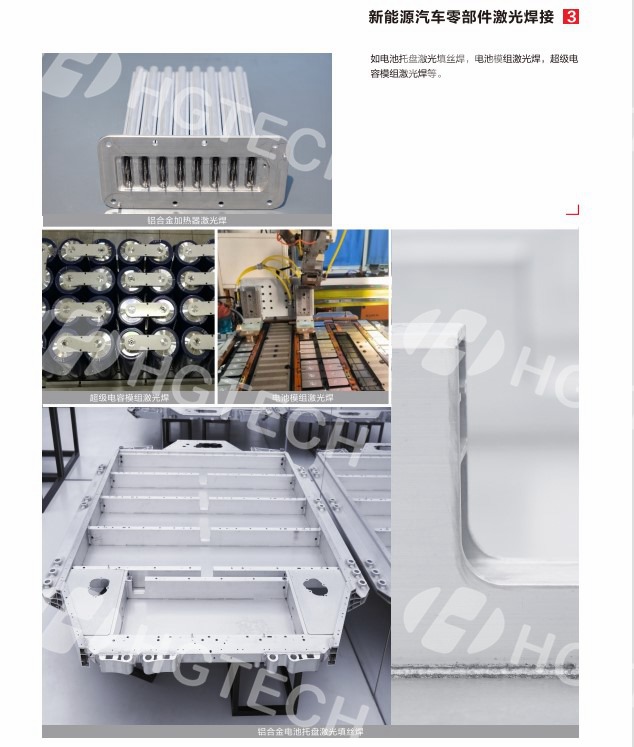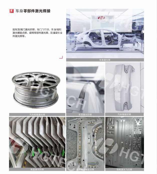 為客戶提供車身零部件、傳動零部件、新能源汽車零部件激光焊接等服務,如車頂/尾門激光釬焊、車門飛行焊、車身/地板激光螺旋電焊、座椅零部件激光焊、防撞梁安全激光焊、差速器激光焊、雙聯齒輪激光焊、離合器轉轂激光焊、傳動軸激光焊、電池托盤激光填絲焊、電池模組激光焊、超級電容模組激光焊等。