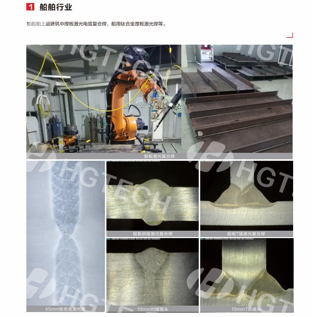 為客戶提供軌道交通、工程機械、船舶制造、鋼結構等領域中厚板的高效焊接服務。常用工藝有窄間隙厚板/超厚板激光填絲焊、激光電弧復合焊等,厚度可覆蓋5-50mm。